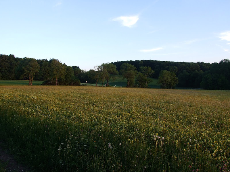 Stattdessen bin ich dann zum Uracher Wasserfall gefahren. So einen hohen Wasserfall hab ich in Deutschland noch nicht gesehen. Und da ich so spät kam (schon halb 21), war außer mir kein anderer dort. Von dort hab ich mein Rad noch auf die Alb getragen und auf einem Aussichtsfelsen den Sonnenuntergang angeschaut. Zum Abschluß hab ich dann noch einen richtig guten Trail gefunden, der zurück zur Ruine führte. Der Trail verlief immer an der Kante und hatte ein paar richtig gute Natur-Drops von Felsen hinunter. Meine Trailwahl ab der Ruine war dann ein Griff ins Klo, der Trail war einfach nur eine zugewachsene Steilabfahrt. Egal. Danach gings zurück im letzten Licht zum Bus.